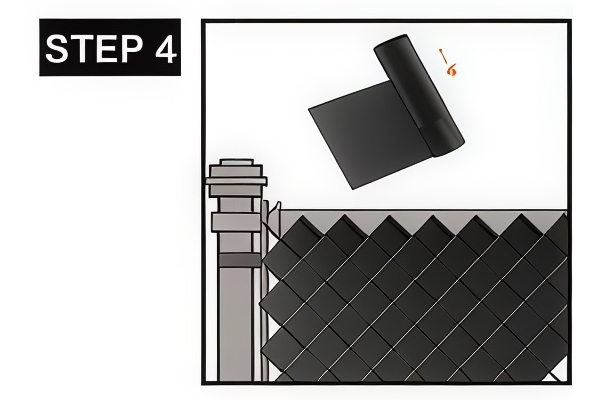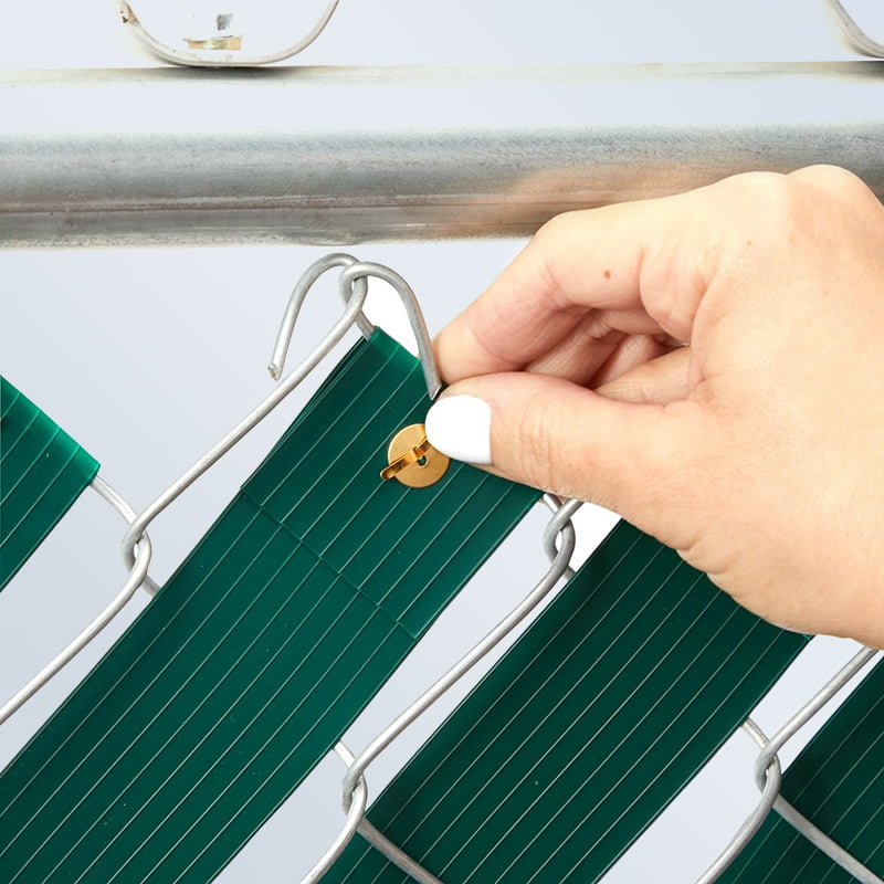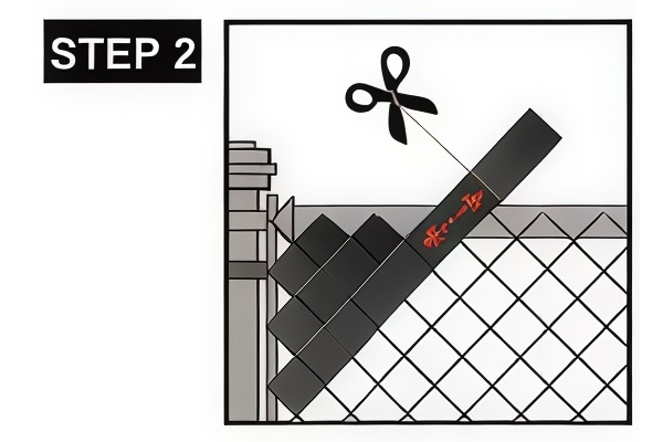 Measure the needed length of tape for each row. Cut the tape in suitable length to your measurement. Weave the cut fence privacy tape. Wrap the overlap and push the clip on the final link to lock.